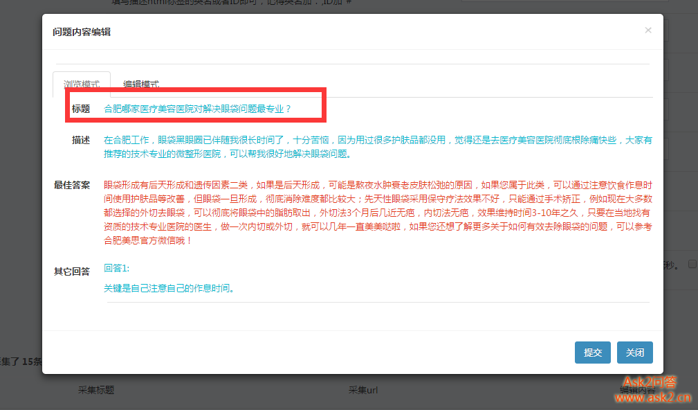 内容管理里面采用词语过滤方式,替换某些词语,达到内容伪原创,这个是全局的,采集过来对问题标题,描述和用户回答,还有文章内容都是支持替换的,这个简单粗暴!