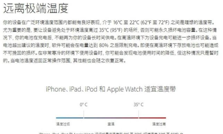 但是很多人纳闷,既然手机都是用的锂电池,为什么偏偏苹果的iphone特别容易在冬天没电和跳电呢?这主要是因为苹果手机的温控设置比较严格,大部分手机都具备温控芯片,检测环境温度,在你的手机温度过低时为了保证安全,iphone的温控芯片会自动调整你的手机状态,只是这个限度值苹果设置的比较保守,比如说0-35度,北方一旦进入0度左右的寒天就容易导致电量迅速下降,但是苹果这样设置的好处是在夏天温度较高时电池不容易发生涨肚,漏液的情况。