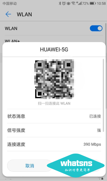 2.此时你还是不知道密码,只是连接上了WIFI.好,你打开手机里的那个WiFi界面点击WIFI名称,会出现一个二维码,截图保存。
