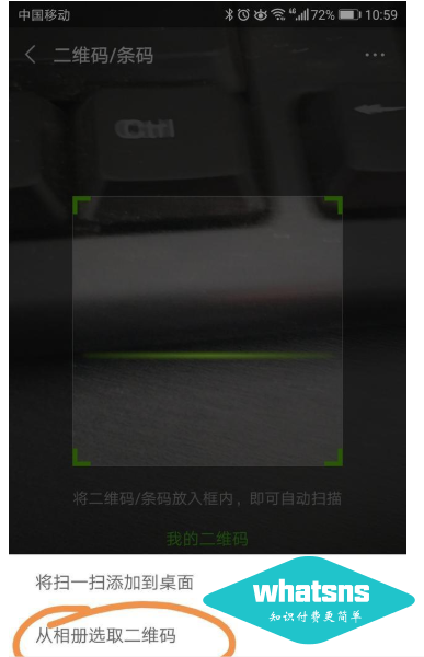 3.使用微信扫码功能,从相册选取刚才的二维码。会出现明码,也就是WIFI密码。