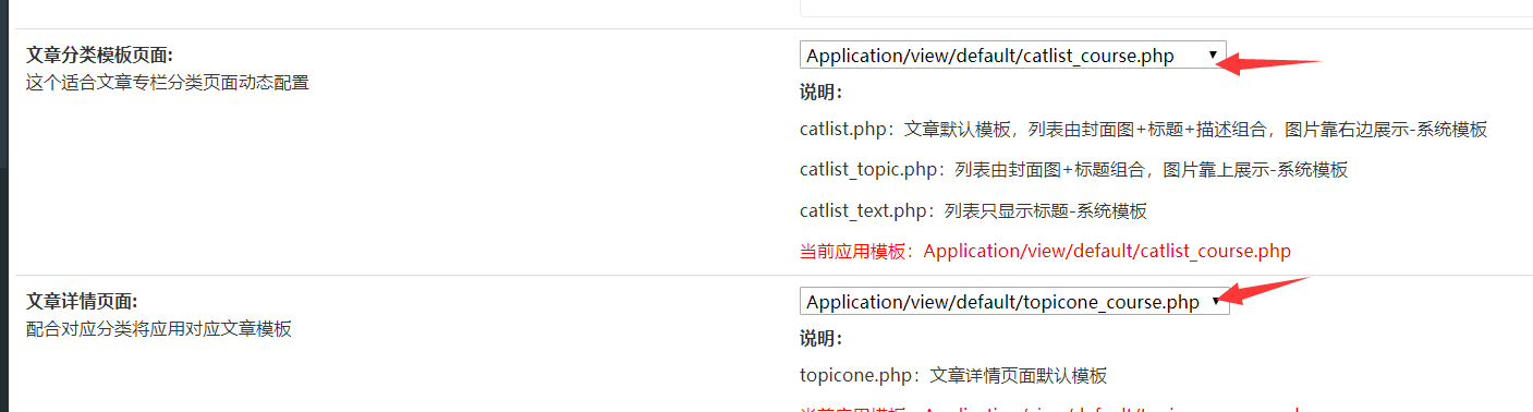 文章分类模板设置为catlist_course.php,文章详情页面模板设置为topicone_course.php