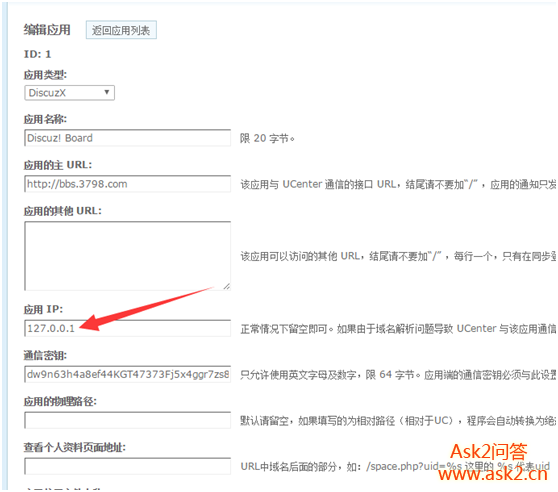 3、检查配置是否成功,登录到ucenter server点击应用链接查看ask2问答应用的通信状态,如果是通信成功则表示ucenter整合成功。