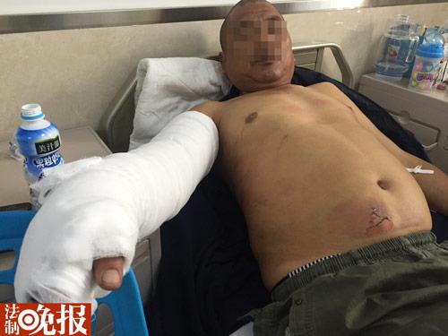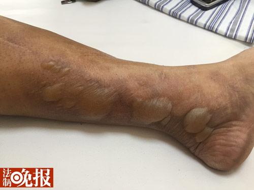 今天上午9时许, 法晚记者在右安门医院烧伤科的病房内看到了存车处管理员万先生。躺在病床上的万先生眉头紧蹙,胳膊上裹着厚厚的纱布,裸露的地方可以看到明显的水泡。医院诊断,万先生的腿部、腹部、脖颈以及手臂均有不同程度的烧伤,其中右臂部分最为严重,属于中度烧伤。?