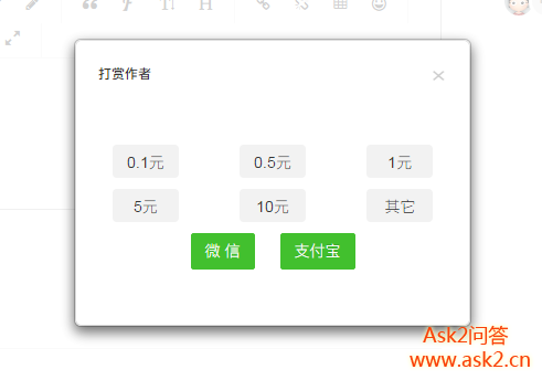 pc端支付打赏调整比较大,首页就是打赏弹窗页面增加对支付宝打赏支持:其次新增文章打赏功能:文章打赏功能能看到这篇文章全部赏金和最新的打赏用户--感谢对问答系统支持!