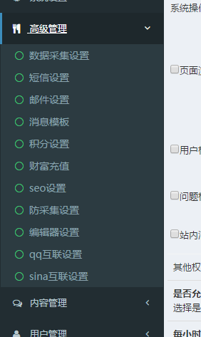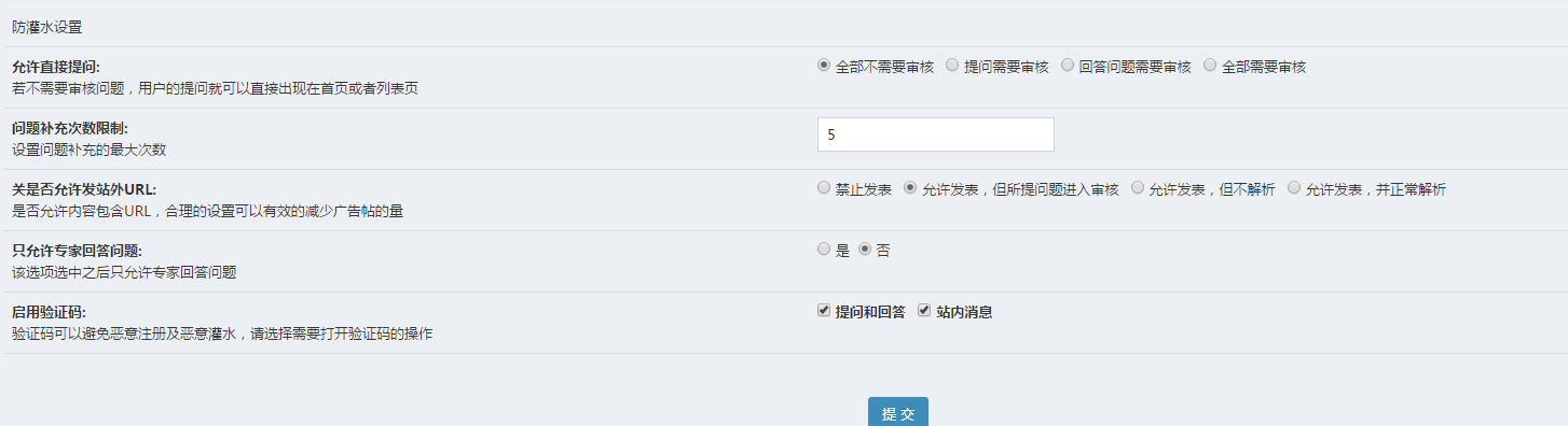 可以针对不同用户组角色进行权限控制,发布文章权限,以及发布文章和提问还有回答数限制。
