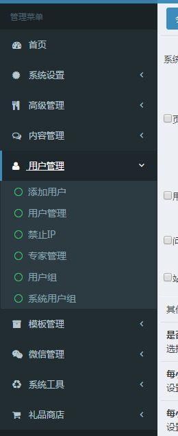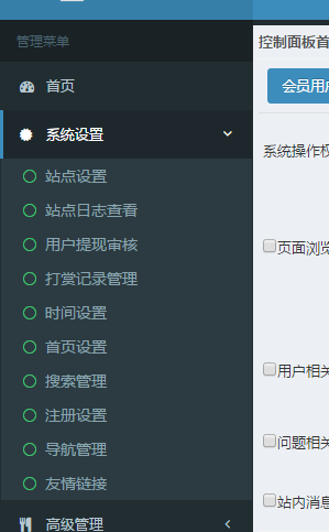 对于后台功能,我这里估计一言真是难尽,功能太多,而且都是实用的功能,我可以截图下: