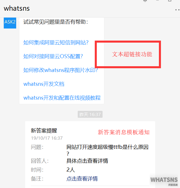 2 对于新回复或者采纳答案微信端能收到通知,不是文本是微信自带的消息模板通知