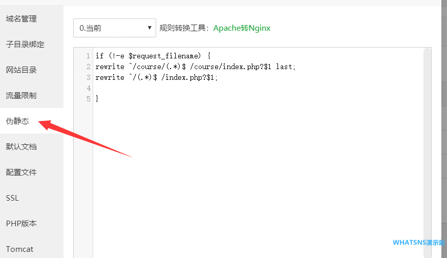 whatsns的nginx规则很多,你可以百度搜索或者去官网看看设置教程,直接把规则粘贴即可