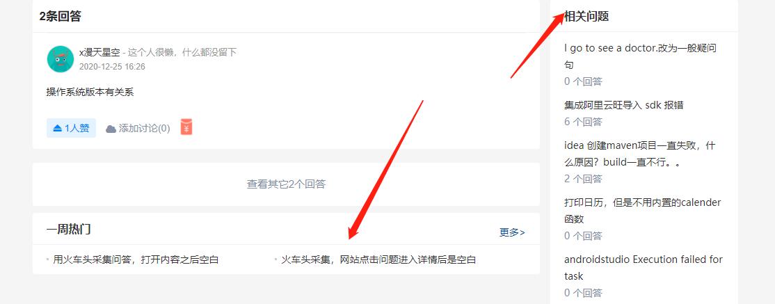 火车头采集发布的问答内容,但是打开之后空白,然后发布测试了一下,提问后能正常显示,但是回答了之后就显示空白。